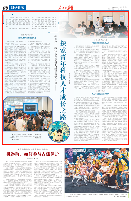 一家中国企业,面向全球招聘技术人才,其大背景是青年科技人才正在成为中国科技创新发展的生力军。面对基础科研和原始创新提出的种种问题,加大对人才队伍的投入,正在成为科技企业不约而同的选择。在毕业季来临之际,腾讯以多项大规模招聘计划,向青年科技人才伸出了橄榄枝。